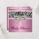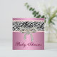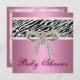 Pink Zebra Diamond Bow Baby Shower Invitation