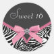 Elegant pink zebra sweet sixteen stickers. This pretty pink and black pink zebra sticker is easily customised for your event by simply choosing the "Customise it!" button to begin adding your event details, font style, font size & colour, and wording. Please note - all of the stickers, cards and invitation designs you will find on Zazzle are printed graphics with no actual jewels, bows, raised, embossed, or added parts or pieces.