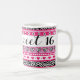 Cute and fun striped design feauturing lovely flowers, zebra patterned hearts, stripes and dots. Lovely pattern in pink, black and white on sweet 16 th birthday mug. Fully customisable, easy to personalise with your details, names, fonts and text. Perfect sweet sixteen gift.