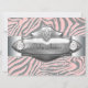 Silver pink zebra baby girl zebra baby shower invitation. Add your details to the front and back by simply choosing the orange "Customise it!" button to begin adding your event details, font style, font size & colour, and wording. Please note - all of the invitation designs you will find on Zazzle are printed graphics on flat paper stock with no actual jewels, bows, raised, embossed, or added parts or pieces.