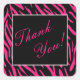 The stylish zebra print Thank You sticker design by Striped Hope™ features black and pink zebra stripes and the word "Thank you!" in pink script text over a black square. The black square is outlined in a double white line. These stylish Thank You stickers are the perfect addition to your thank you cards, wedding favours, etc. Brighten someone's day with these stylish zebra Thank You stickers.