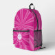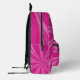 Backpack features a Christian cross made of bright pink zig-zags. Both fun and edgy. Sort of hard rock feminine. Shows on a white, fractal circle which is on a bright or hot pink circular background fractal sunburst. Customise by adding your name to the GOD BLESS for a special backpack for yourself or a gift.