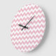 Pink Zigzag, Pink Chevron, Geometric Pattern Large Clock