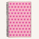 Seamless pattern of Zinnia flower printed on notebook. Colours of the Zinnia flower are pink ray florets and yellow disc florets. Floral design notebook for lovers of flowers or nature.