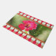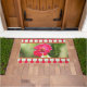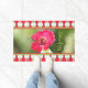 Pink Zinnia flowered decorative pattern design on this welcome door mat, text can be personalised to any message or text is removable.