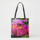 Pink zinnia with bumblebee, pink flowers, cute bee tote bag