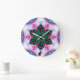 This Kaleidoscope clock serves as a mandala for meditation, a focal point for the imagination, and as a functional timepiece. Kinetic Collage kaleidoscope compositions are created from psychedelic light show screen capture images. 1/30th of a second captured in space and time. Each unique image’s name is based on some special characteristic of the composition, or on whimsy. If you gaze at this Kaleidoscope clock long enough, time may stand still. . . Brilliant colors paint the screen in projected syncopation. Exotic shapes shift and careen, spinning vision with sensation. A crazy scene and that’s a fact. Making sense seems out of reason. But when you snap a slice intact — there’s potential for cohesion. Copy and paste it, flip and seal. Repeat until the arc’s complete. Construct it so it will reveal a bright kaleidoscopic treat. Thus from chaos, a balanced form. Perfect in pleasing symmetry. If only life would so conform, we all could live in harmony…Please note: If you wish to have any Zazzle product imprinted with one of my arts, let me know your preferences and I’ll make it happen. kineticcollage@cox.net