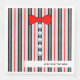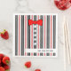 Completing the look, there's a bright red bow tied five silver metallic buttons. The text area, at the bottom, can be personalised with a name, occasion or special event. You can also remove the text block.