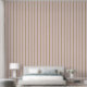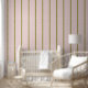 Light pink wallpaper with dark green pin stripes widely spaced.