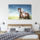 Pinto Horse Gallops Through Flowery Spring Meadow Canvas Print