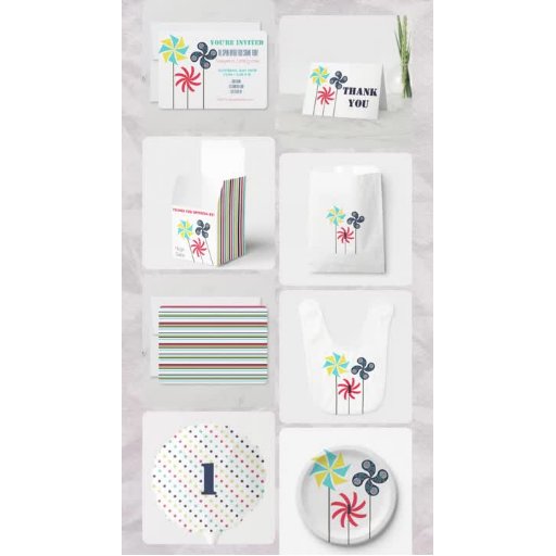 Pinwheel Themed Birthday Invitation - Colourful