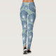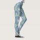 These leggings have a mid-century modern design of dusty blue circles with white starbursts inside on a field of seafoam green.