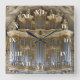Roman numerals in white lettering on top of a view of the beautiful pipe organ in the Marktkirche, Halle, Germany. The organ pipes are encased in elaborate gold-painted tracery and the edges of the vaulted ceiling can be seen at the top. This can be customized as either a round or square clock.