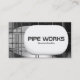 A stylish 3d lozenge shaped text panel held up on an abstract structure of metallic pipes ray trace rendered and lit inside a reflective "chromium" sphere. Company details on the front, name and contact details on the other side. Ready to be customised.