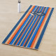 Royal blue, orange and navy blue colorway with orange back. Vintage surfboards of the sixties and seventies were all about stripes and inlaid faux woods. Our yoga mat design is reminiscent of those surfboards which were so popular on the North Shore of Oahu, Hawaii. We combined faux maple wood and added competition stripes and our North Shore Longboard Surfing Club logo and comes in several colour ways.The mat reverses to a bright solid colour.