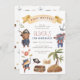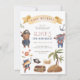 Set sail for adventure with this adorable pirate-themed birthday party invitation! Charming watercolor illustrations, including a bear captain, elephant look-out, and fox pirate frame the party details. A scroll at the top welcomes guests with a hearty “Ahoy mateys!” On the back, a playful pirate pattern adds extra fun. A fun-filled way to gather the crew for a pirate-themed celebration! View the collection linked on this page for matching items or visit our store for more kids birthday invitations.