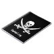 This notebook features a classic pirate flag Jolly Roger with crossed swords. White on black, and as shown with the title "Captain's Log", but this is a template, so you can make it "Jack's Notebook" or anything you'd like!