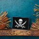 Calico Jack Pirate flag. One of the most famous versions of the pirate flag designed by a famous pirate named Calico Jack. Simple white skull and bones on black background. Available on many different gift ideas and products that you can easily customise with your own text and images.