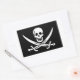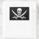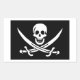 Great for "Talk LIke a Pirate Day" on September 19th! The jolly roger flag in black with white skull and crossbones warns others to keep away from yer loot, or informs them of your pirate allegiance. You can choose the sticker shape you'd like, but not all shapes may work well with this image.