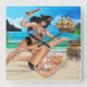 PIRATE GIRLS CATFIGHT SQUARE WALL CLOCK