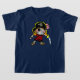 Good quality t-shirt, I didn't expect too much but it's good quality, matched the invites for my sons party and he absolutely loved opening this on his big day. Went straight to school with it, too! Print looks very good, vibrant colours, washing very well, too. I don't tumble dry tshirts so can't comment on that. Lovely idea for a birthday child!