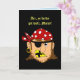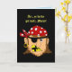 This humorous greeting card template has a cartoon pirate man on the cover, wearing an eye patch and bandanna. It says, "Arr, ye better get well, Matey!"