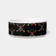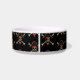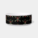 This pet bowl is shown in white with a black accent strip with a cute pirate print design.