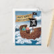 Set sail for adventure with this festive birthday card featuring a whimsical pirate ship soaring through the clouds! The ship is laden with a treasure chest overflowing with colorful gifts, and the Jolly Roger flies proudly above. A banner proclaiming "Ahoy Matey! Happy Birthday!" adds to the festive atmosphere. T