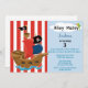 Ahoy Matey… come aboard and ye shall see, what fun we have in store for thee. This red and white stripe background with a pirate ship invitation is an adorable invite for your special little one. This invite is made for a girl or a boy. The girl invite is pink and white stripe background. Matching postage stamps available. Graphics by: prettygrafikdesign.com