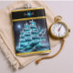 A stunning Pirate Ship with billowing sails glides effortlessly over luminous waves under a bright full moon. The waters shimmer with enchanting blue hues, creating a magical atmosphere that highlights the vessel's grandeur and the surrounding tranquillity.