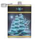 Pirate Ship Gliding Through Glowing Night Waves Hip Flask