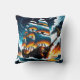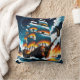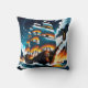 Pirate Ship Sailing Through Stormy Seas at Dusk Cushion