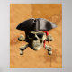 Classic Pirate Skull and Crossbones, The Jolly Rodger, with pirate hat and eye patch. Background is a vintage style nautical map of the Florida Keys, which history tells us was a haven and base of operations for pirates.