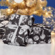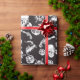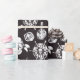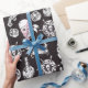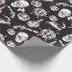 White graphics of skulls & pirate elements on black background, seamless repeat pattern