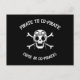 "Pirate to co-pirate - come in co-pirate!" text in bony lettering, with a Jolly Roger in a leather helmet and goggles. B/W graphic, on t-shirts, hoodies, cards, gifts.