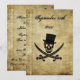 A classic Jolly Roger, with optional top hat, and Rackham crossed swords on an antique decorated paper with a grunge look and room for all your custom invitation details in pirate talk!