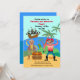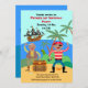 Calling all mates for a pirate party adventure. Celebrate your little pirate’s birthday with this colourful and modern invitation, featuring a pirate boat with black sails and two pirates that just found a treasure chest buried in an island. The background features a ship silhouette in blue tones. This card is perfect for a boy's pirate-themed birthday, walk the plank pirate birthday, talk like a pirate day, and more. It’s easy to personalise this party invitation with your own details.