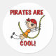 Stick figure pirate design features a stick figure pirate wearing an eye patch and cap swinging from a rope and text that reads "Pirates are Cool!". If you love pirates you're sure to love this awesome pirate design!