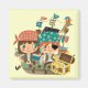 Two pirates and a parrot wearing skull caps, a pirate ship with skull and crossbones flags, a treasure chest filled with gold coins and jewels, great for pirates of any age. Pirate T-shirts, bibs, mugs, cards, stickers, key chains, pillows, keepsakes, magnets, wall clocks, and much more.