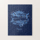Puzzle featuring the zodiac symbol for Pisces in soft silver blue, overlaid with the stars of the constellation, against a starry sky background graded from deep midnight blue to black.