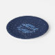 Paper plate featuring the symbol for Pisces in soft silver blue, overlaid with the stars of the constellation, against a starry sky background in deep midnight blue