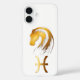 Chinese and Western Astrology: Pisces born in Horse year: 1918, 1930, 1942, 1954, 1966, 1978, 1990, 2002, 2014. Elegant golden design with horse head and pisces symbol on iPhone case.