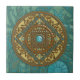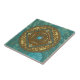 This Pisces themed mandala features an aquamarine stone surrounded by the symbol for the sign, the constellation, and the alchemical symbol for Water among filigree and weaves. This tile can be framed to create a trivet or placed inside a wooden gift box. Tiles without a frame will also fit inside the gift box to create a matching set.