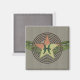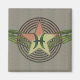 Tattoo-inspired flames form the background of a circles within circle for the star with the symbol for Pisces the Fish in the centre.