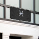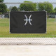 A silver chrome like Pisces Zodiac symbol on a black snake skin style design texture print decor. A modern urban racy design for a great custom birthday gift idea.
