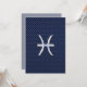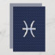A chrome like Pisces Zodiac Sign on a navy blue carbon fibre style design texture print background. A modern urban racy design for a great custom birthday gift idea.