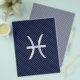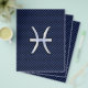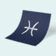 A chrome like Pisces Zodiac Sign on a navy blue carbon fibre style design texture print background. A modern urban racy design for a great custom birthday gift idea.