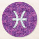 Pisces Zodiac Sign on Fuchsia Digital Camo Round Paper Coaster