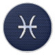 A silver chrome like Pisces Zodiac symbol on a navy blue carbon fibre style decor. A modern urban racy design for a great custom birthday gift idea.