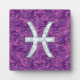 Pisces Zodiac Symbol on Fuchsia Pink Digital Camo Plaque